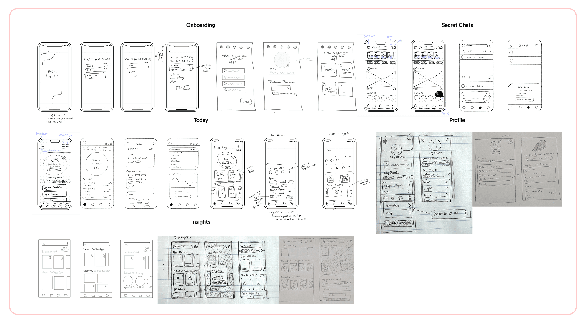 The initial design of Secret Chat was user-friendly and free of major issues. The two most significant changes were the introduction of Flo "stories" and a chatbot feature. Originally, Flo "stories" were part of the Today page, but I decided they fit better on the social screen to align with the UI of other social apps.