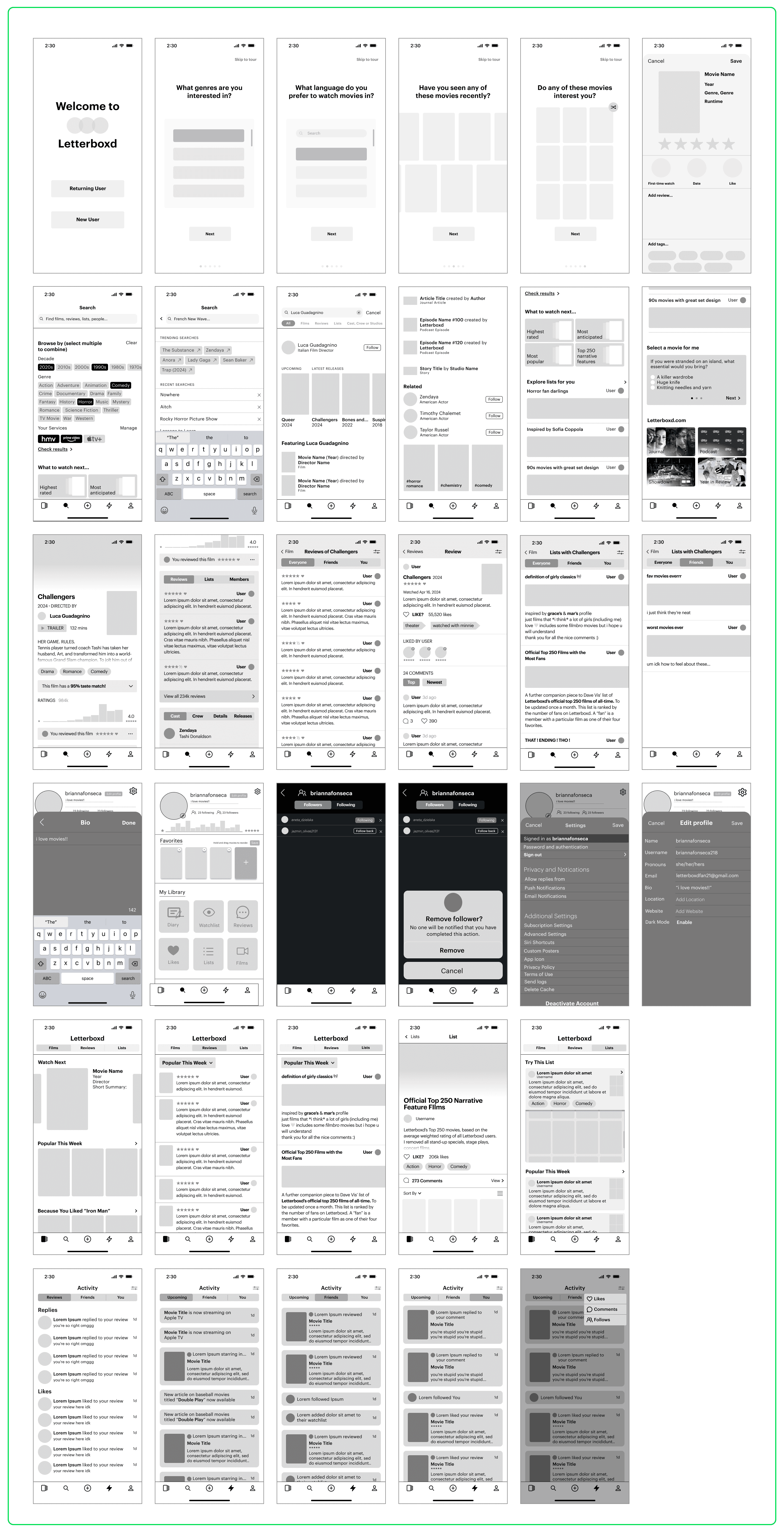 After sketching low-fidelity screens, we moved into mid-fidelity wireframes to build user flows and conduct testing. This stage allowed us to merge ideas from our sketches, iterate on new concepts, and refine designs through continuous feedback and collaboration. Below are some of the key screens we developed